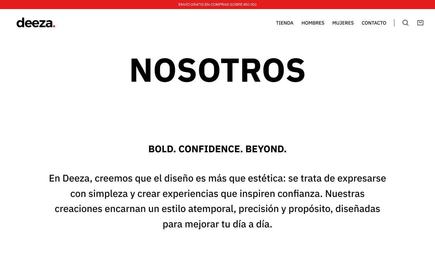 For Deeza, a Chilean denim brand, I designed a conversion-focused ecommerce website intended to serve as the visual and structural foundation for their future Shopify implementation. The objective was to create a strong digital presence that reflects the brand’s identity while supporting a seamless shopping experience.