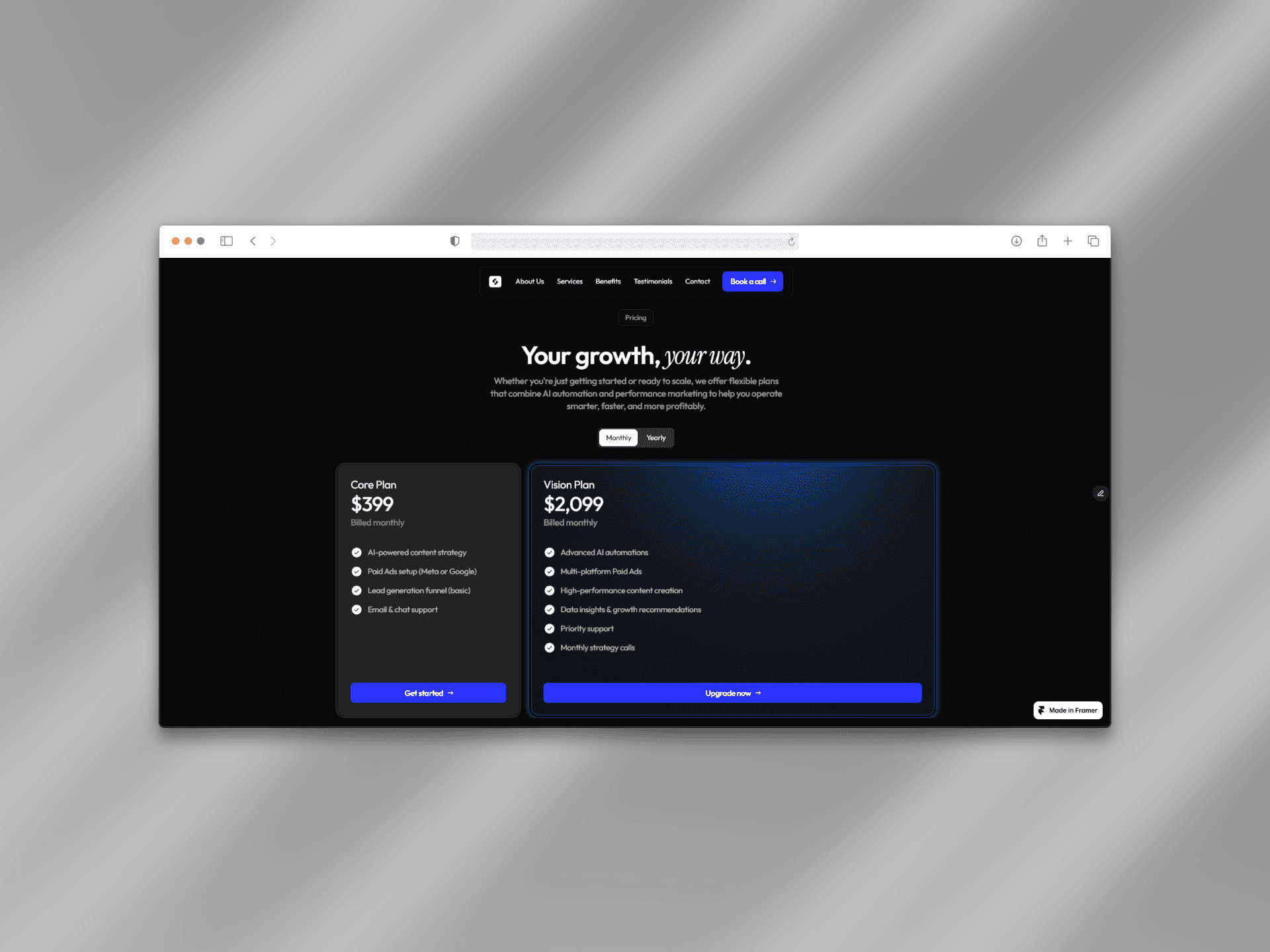 Web Studio is a modern, dark-themed landing page template designed and developed specifically for marketing agencies and digital studios. Created as a ready-to-use solution, the template is built to help agencies communicate value clearly, establish credibility, and drive client acquisition from the first interaction.